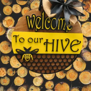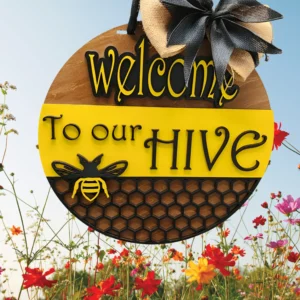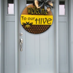 “Welcome to Our Hive” Bee-Themed Front Door Sign