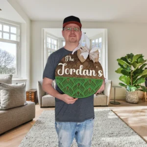 Welcome guests with elegance and style with our 18″ Personalized Last Name Welcome Sign! Hand crafted from high-quality wood, this sign combines white, green and woodgrain finishes, creating a sophisticated and timeless design perfect for any home.