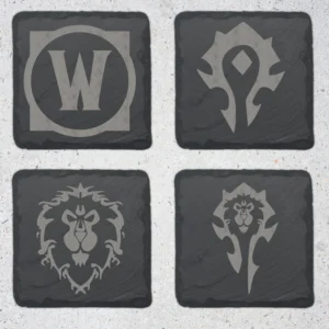 Bring the world of Azeroth to your home with these handcrafted slate coasters, designed for true World of Warcraft fans! Whether you fight for the Horde or stand with the Alliance, these coasters feature detailed engravings of all WoW class emblems, making them the perfect addition to your gaming space, office, or bar.
